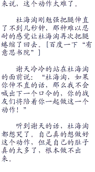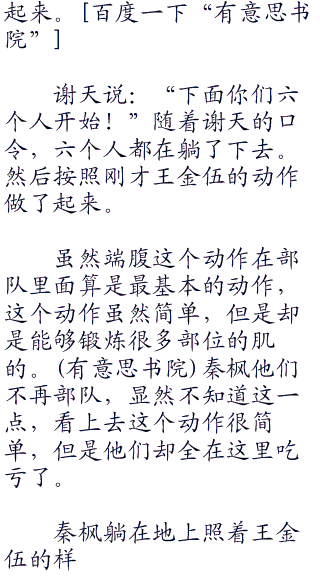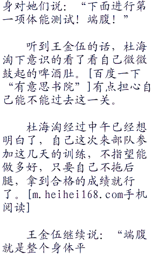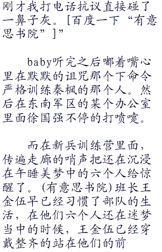 听到白燕的话,baby又着急了。不过这次白燕没有在逗她笑着说:“别着急,只是训练强度比较大,没有其他事!”