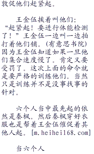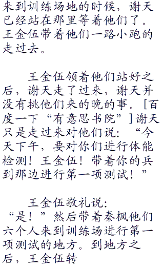 白燕笑着说:“累肯定很累的,今天去了就跑了三公里,而且从明天开始每天武装越野五公里!受伤应该不会,虽然训练严格,但是部队方面还是会把握尺度的!”