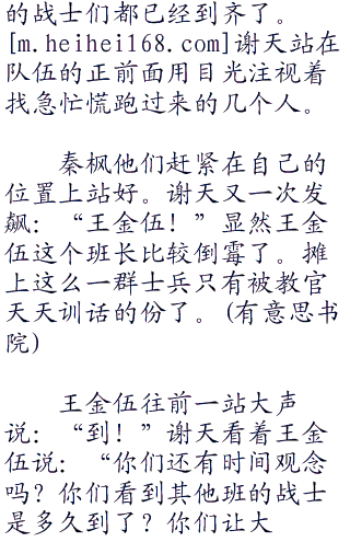 秦枫和王金伍把大家都喊起来,穿好衣服来到楼下集合的时候,整个新兵连