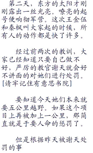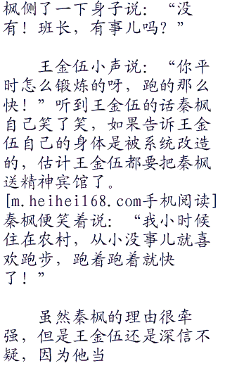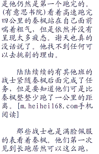 秦枫跑的太快了,后面的战士们只能是望洋兴叹了。因为大家发现无论再怎么跑都追不上秦枫的步伐。