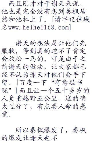 听到秦枫的话,所有人的脸上都露出了惊讶的表,包括谢天。谢天心里此时犹如万头草泥马奔腾而过。