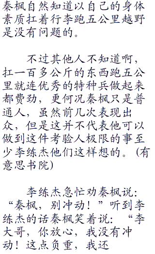 但是他并不敢真的让秦枫去扛那么多的负重。虽然训练严格但是秦枫他们毕竟是来录制节目的嘉宾,秦枫的身份大家都知道。如果秦枫出点什么意外,谢天可承担不起这个后果。