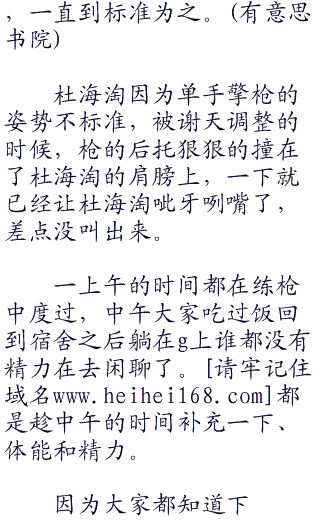 看似简单的动作,在杜海淘做了几十秒的时候,他就已经感觉到自己握枪的手腕有一种微微酸痛的感觉。但是还是可以坚持,但是随着时间的推移,这种感觉越来越明显,杜海淘感觉自己的胳膊越来越沉。已经有一种完全拿不住枪的感觉。