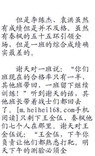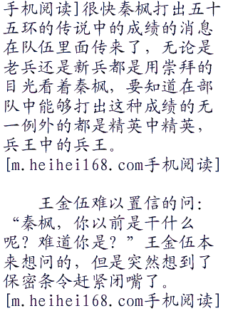 谢天感觉到自己的嘴角一阵的苦涩,尼玛。这也太残暴了吧。五十五环(在计算环数当中,如果子弹都是从一个弹孔中打进去的话额外加一环!秦枫五发子弹全部一个弹孔中穿过,所以加五环,即为五十五环)这可是特种部队狙击手才可能有的成绩。