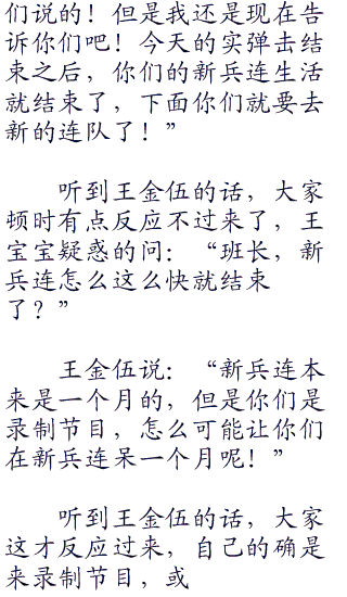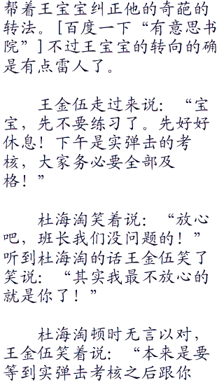王金伍带了这几年的新兵,王宝宝绝对是头一个。王宝宝也知道自己的问题在哪里但是他训练的时候就是纠正不了。