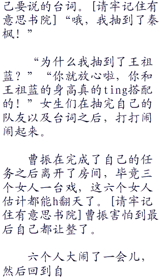 曹振笑着说:“好了,现在你们开始挑选你们明天的队友和你们要说的台词吧!”说着曹振从身边拿出一个盒子放在六个人面前的桌子上面。