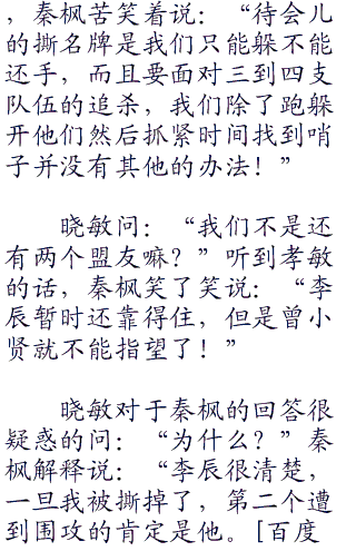 邓朝笑着说:“秦枫,你这样是打算把晓敏抱在怀里保护吗?你这样baby知道吗?”听到邓朝提到baby,晓敏有点小尴尬。但是秦枫反而很淡定。