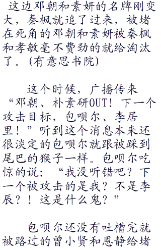 邓朝拉着朴素研就跑,刚才秦枫一直在躲邓朝,但是邓朝一直在那里喊秦枫的名字,秦枫当然知道邓朝的位置。刚才被邓朝追了半天,现在秦枫怎么可能会放过邓朝呢。