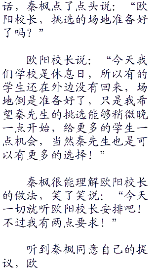 在听到学校的广播说秦枫在一个小时之后就要莅临学校为他的新电影挑选演员之后,所有人都是动了起来。