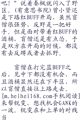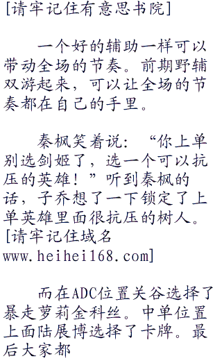 秦枫微微摇了摇头说:“你来打野,选酒桶就可以!”酒桶是