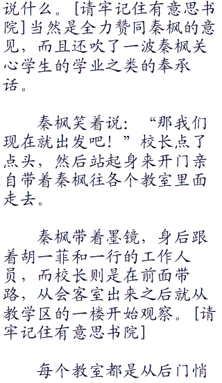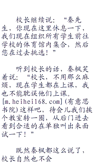 进入会客室之后,校长一脸兴奋的说:“欢迎秦枫先生来到我们学校!这是我们学校的荣幸啊!”