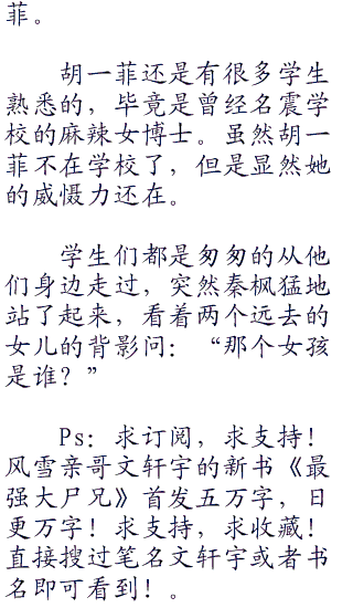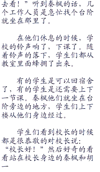 第二天早上秦枫、胡一菲他们吃过早饭之后,就一起来到了鼎天娱乐和工作人员一起前往胡一菲以前上班的学校,也是胡一菲的母校。