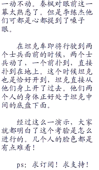 秦枫只是微微一笑说:“随时奉陪!”听到秦枫的话,徐哲嘴角露出一丝笑意的说:“我可先给你提个醒,军事演练可不是单纯的比枪法准的!”