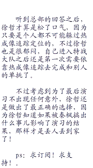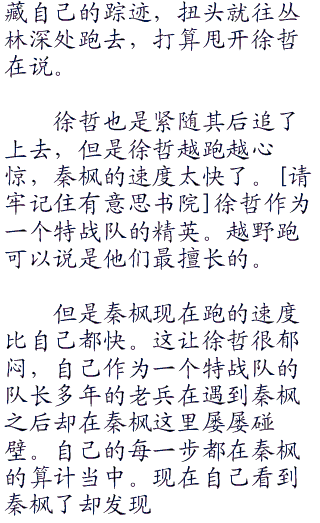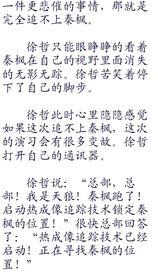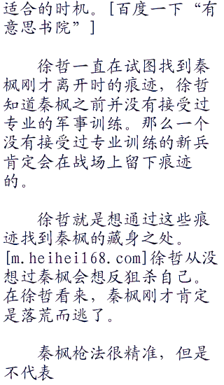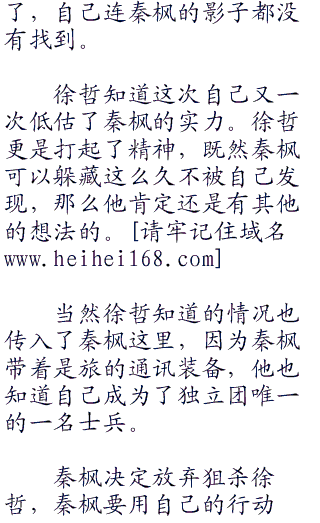 而秦枫现在面对的最大的困难就是徐哲。虽然秦枫潜伏在徐哲的身后,但是秦枫并没有把握可以一枪狙掉徐哲。