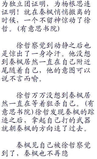秦枫的目的是悄无声息的解决掉徐哲,然后在想办法替杨根思连找回场子。但是现在秦枫还没有找到很
