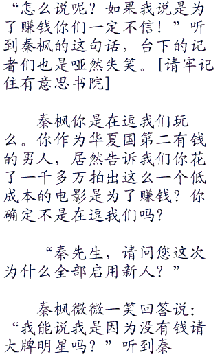 发布会开始了之后,秦枫先是向记者们介绍了夏沫、洛雪这几个年轻的主演。在秦枫介绍的同时,记者们也是纷纷