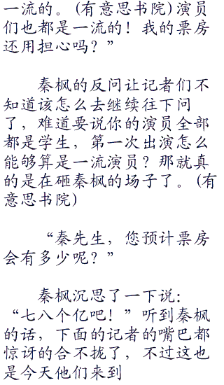 发布会的现场来了很多的记者。秦枫和白燕以及一众主演来到会场中间的座位上面坐下。记者们也在为记者们安排的座位上坐下之后,发布会正式开始了。