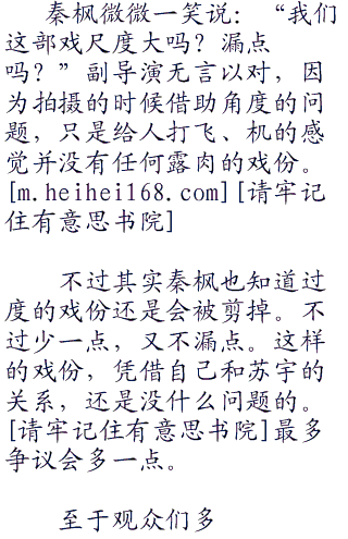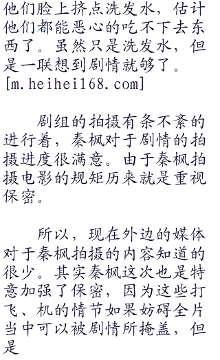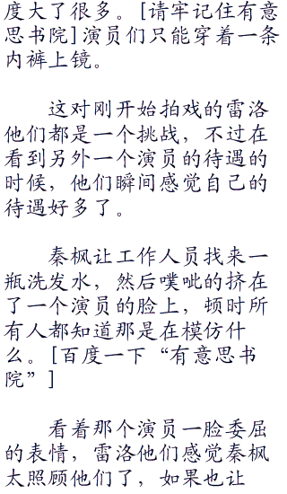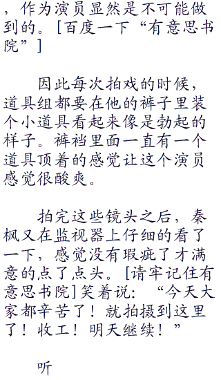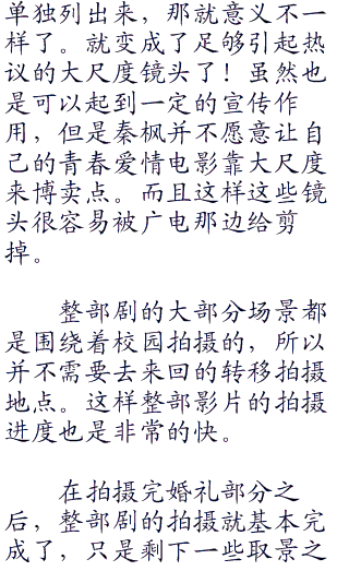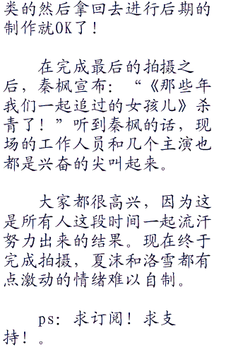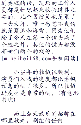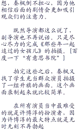 秦枫看着监视器满意的说:“嗯,你们几个表演的不错,后面的戏份还有!到时候更要仔细的