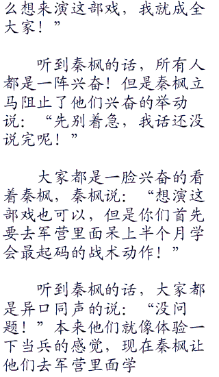 虽然演员们都是新手,但是秦枫交代过的事情他们自然是照办,该说的说,不该说的就是问上一万遍也不好使。