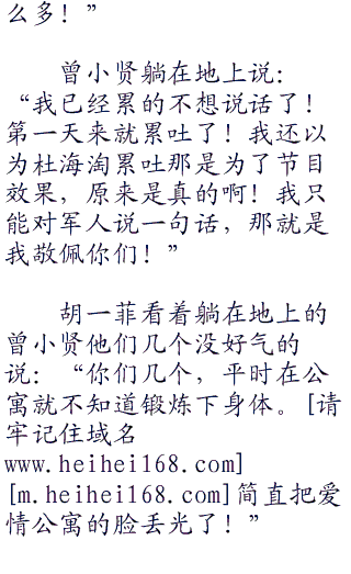 秦枫看着还是一脸兴奋的邓朝、baby他们,嘴角微微上扬。秦枫知道他们明天就笑不出来了。杨根思连里面的连长他们不会因为他们是明星就手下留情的。不过他们这是自己愿意来的,也怪不了别人了。