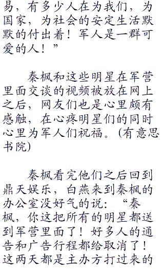 这件事情很快传到了网上,本来《那些年》的话题还没有过去,现在好了,立刻又来了一个《火凤凰》。尤其是关于明星们被送到军营里面进行训练挑选角色。