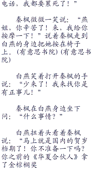 秦枫坐在电脑前打开《火凤凰》的剧本开始为每一个角色找到最合适的人选。