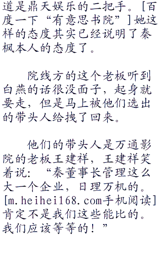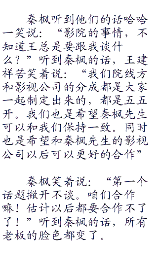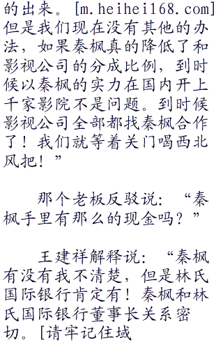 那个院线的老板直接被白燕的话给噎住了。他们没想到秦枫的态度会这么强硬。白燕大家在知