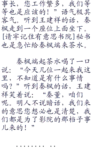 白燕推门进来面带微笑的说:“哦,抱歉了各位,我们董事长现在正在审批几分很重要的文件。等他审批完了马上过来!还烦劳各位稍等一下了!”