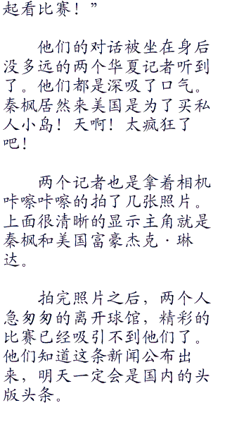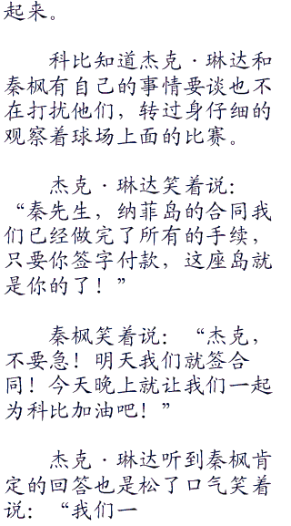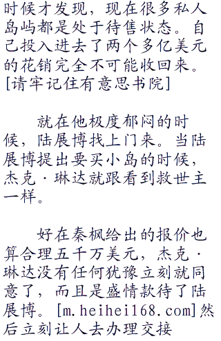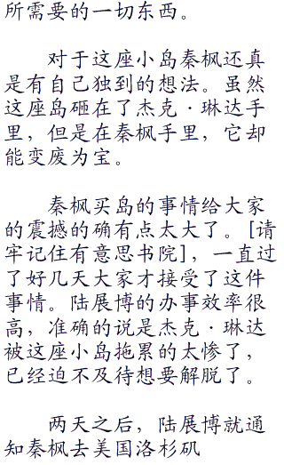 其实秦枫买下这座岛也是为了自己的以后考虑。而且恰好自己拍的电影就是在一座岛上发生的故事,正好可以利用。所以秦枫在找到这座岛屿之后毫不犹豫的派陆展博去找岛屿的所有人杰克·琳达拿下了这座岛的所有权。
