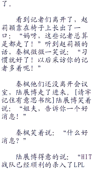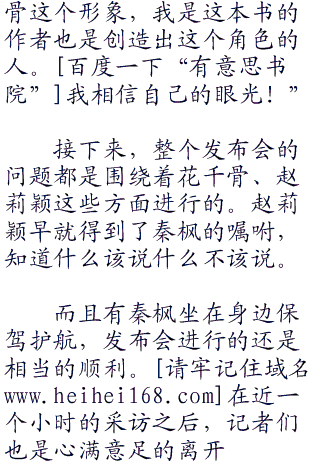 听到秦枫的话,记者们纷纷提问起来,还有不少的记者在拍照。一个记者问:“请问秦先生。您这次特意跑到帝都就是为了邀请赵莉颖小姐来出演《花千骨》这部电视剧吗?”