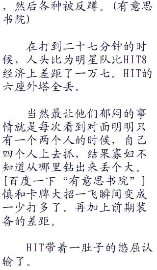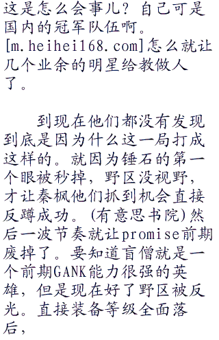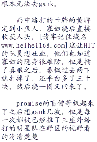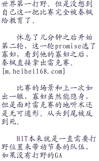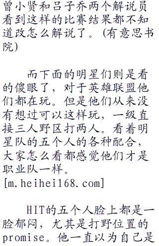 五分钟不到,hit被明星队打了一个。最主要打野位置的promise简直惨不忍睹一级自己的野区被对面打得那叫一个干净。在出门看到光秃秃的野区,promise都要哭了。
