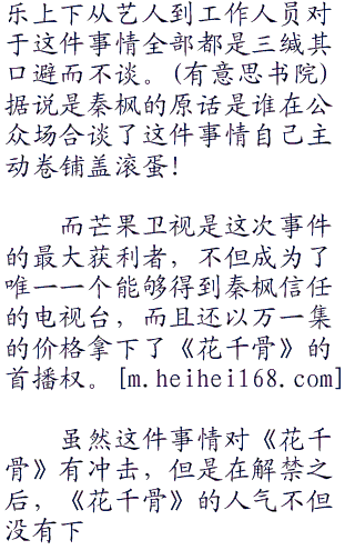 这件事情没费多少劲就解决了,无论是广电还是央视对于这件事情都是没有说太多,所以大家对于秦枫的身份则是更加的猜疑了。