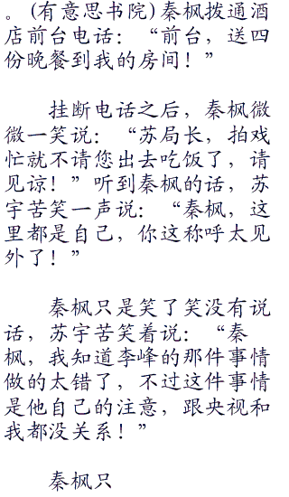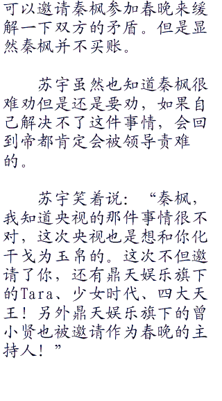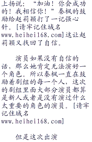 听到秦枫的话,赵莉颖心里暖暖的。赵莉颖抬起头坚定的点了点头说:“导演,你放心吧,我一定会努力的!”
