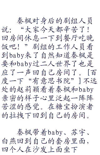 赵莉颖点了点头说:“导演,你说的我都明白。但是我害怕我演不好,让导演失望,让大家失望!”