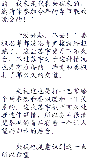 赵莉颖压力很大,秦枫笑着说:“你只需要记住一点,你只要不要让自己失望就可以了!我相信你,你相信自己吗?”