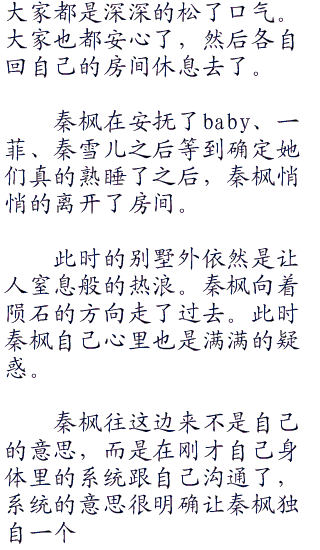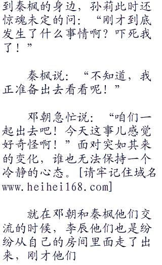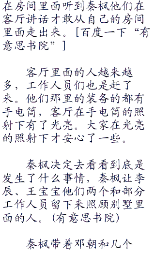 秦枫拍了拍baby的后背安抚着她们的情绪说:“不知道,你们在房间里面不要动,我出去看看是什么情况?”