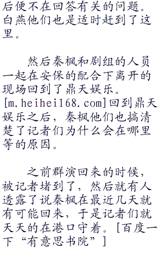 秦枫拨通白燕的电话的时候,白燕和鼎天娱乐的车还在路上,白燕听说记者们已经比自己到的都早的时候也是一脸莫名。