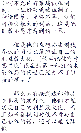 好莱坞看似很强大的,但是其实上并不是,好莱坞是这八家顶尖的影视公司在支撑着,显然他们之间虽然平时看上去很友善,但是实际上他们也是暗斗不止。