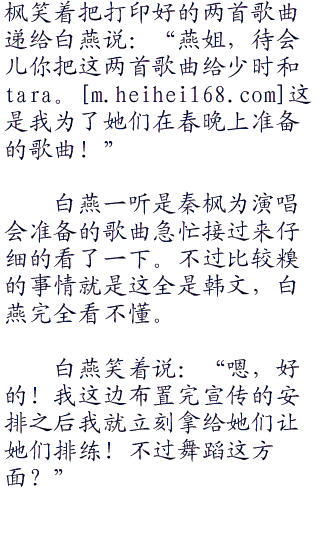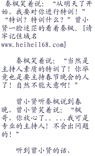 秦枫打开自己的电脑开始想自己、tara、少女时代在春晚上表演什么,而且还要帮助曾小贤提高主持的功力,不然就以曾小贤的水平绝对是要在春晚上面出丑的。