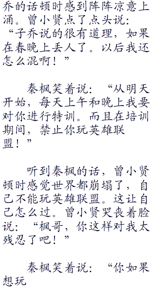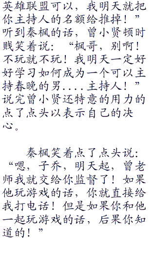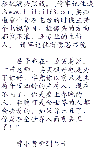 或许曾小贤并不感觉出丑有什么,但是全国人民都知道曾小贤能够上春晚是秦枫的面子,也就是如果曾小贤出差错了导致在春晚上出丑,那么这丢的可是秦枫的脸。秦枫可不想因为曾小贤的失误让自己丢脸。