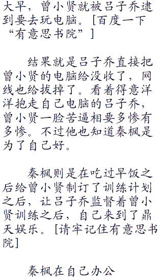 现在吕子乔有了监督曾小贤的权利了,自然是非常尽心尽力的去执行秦枫的命令了。第二天一