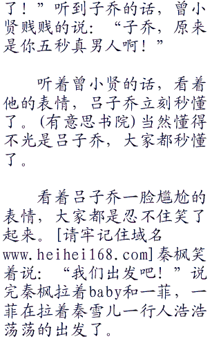 吕子乔贱笑着模仿蛮子的动作嘴里还说着:“我的大刀早已饥渴难耐
