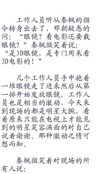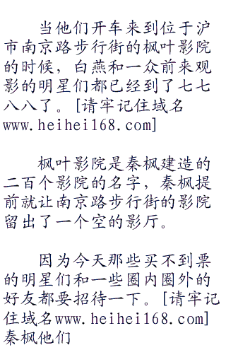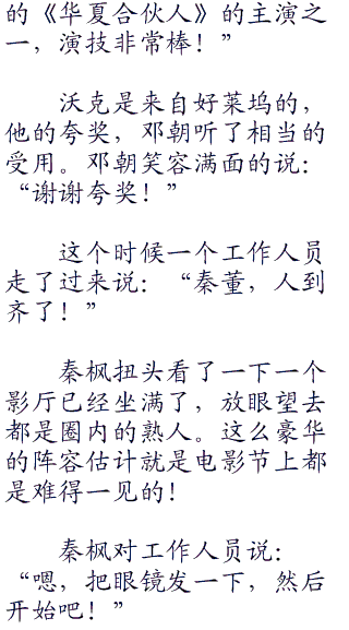 全国各地的电影院都是这样的情况,媒体们也是闻讯而来并且对现场的情况进行报道。爱情公寓里面,秦枫还在收拾着衣着打扮。其他的人已经是整装待发了。baby也是一脸着急的问:“枫哥,你好了没?就等你了!”
