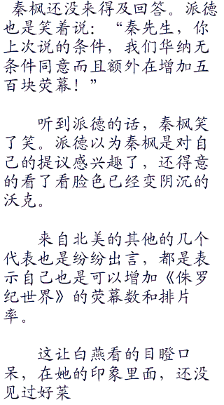 现在秦枫的这部《侏罗纪世界》首日票房就达到了亿,这让世界上的所有影视公司都看到了华夏国内的恐怖市场。