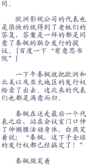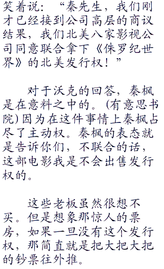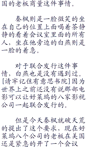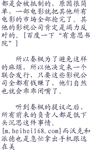 本来还在看热闹的其他地区的影视公司负责人顿时傻眼了。什么叫做联合发行。他们之前还从来没有遇到过那部电影需要联合发行的。