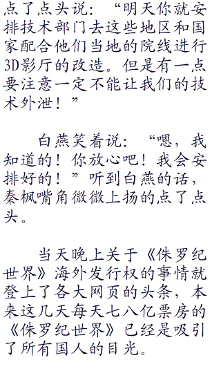 “是的,联合发行!”秦枫很肯定的重复了一边,秦枫一脸微笑的看着在场的所有人然后补充了一句:“这次《侏罗纪世界》的海外发行全部都是联合发行!”