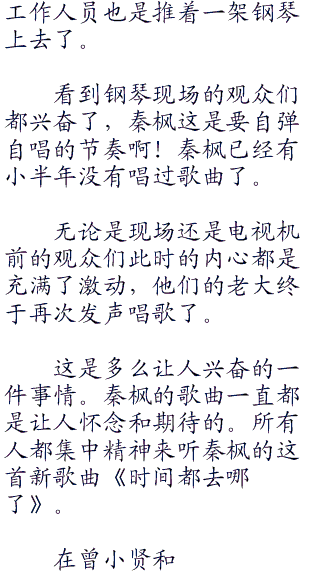 每年的春晚都是从早上就开始准备。秦枫他们到了之后也是在做着最后的准备。毕竟春晚的意义还是非常的重大的。