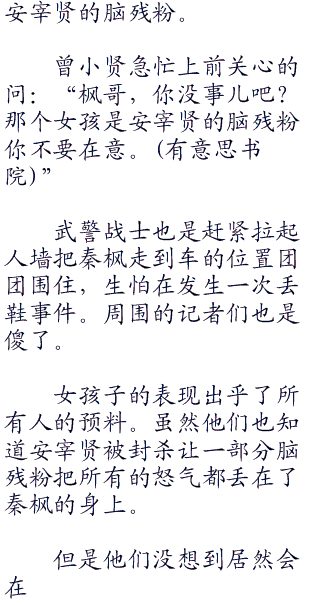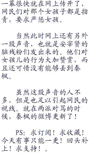 秦枫他们刚下飞机就被机场的工作人员请到了休息室休息,而且被告知现在机场的出机口已经被记者们以及秦枫的蜂蜜们给团团围住了。