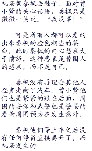 秦枫从朝阳区公安分局出来之后就和曾小贤他们一行人匆匆的离开了首都乘坐航班飞回了沪市。