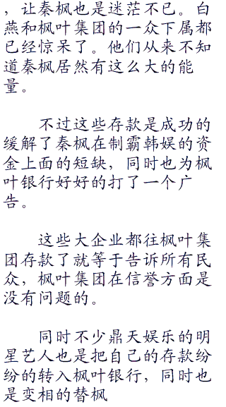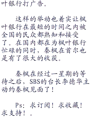 秦枫把合同传回国内给白燕了一份,白燕和公司的高层以及林宛瑜都看了一遍,再次确认这份合同是符合秦枫和鼎天的要求的一份合同之后。秦枫才真正的放心并且在合同上签字了。